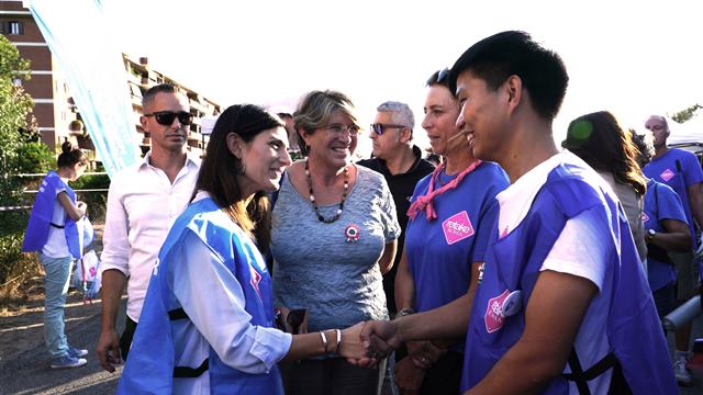 罗马首都市长维吉尼亚·拉吉(Virginia Raggi)走进志愿者中间,拉吉市长向基督徒表示感谢并与他们合影。