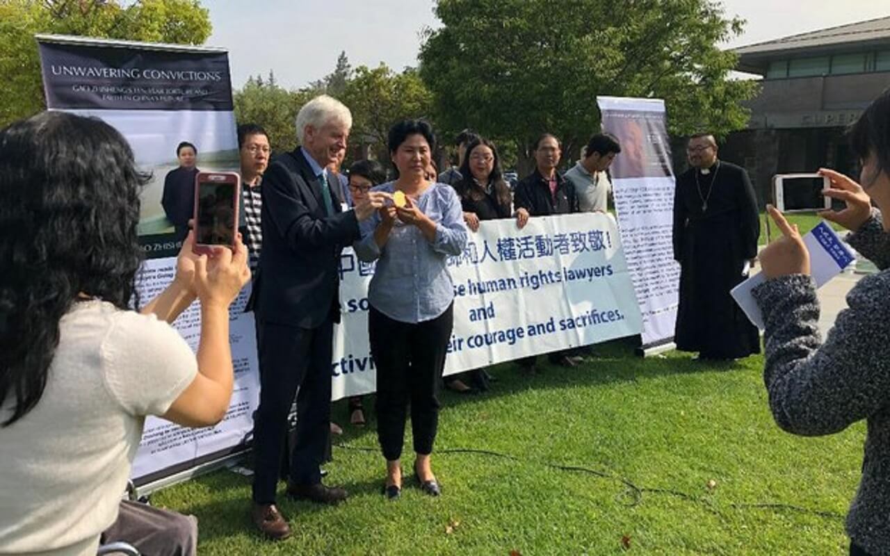 “第一步论坛”委托加拿大外交部前亚太司司长大卫·乔高(David Kilgour)向高智晟颁奖。旅居美国旧金山湾区的高智晟的妻子耿和代丈夫领奖。