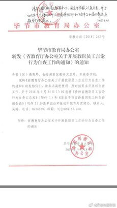 近期,各地政府继续在进一步限制言论自由。例如,贵州省毕节市教育局9月18日发出通知,要求教育系统贯彻省教育厅办公室关于开展教职员工言论自查活动;并警告,教职员工不得妄议中央,丑化中共党和国家领导人,不得通过网络组团结社参与和动员不法串联等。