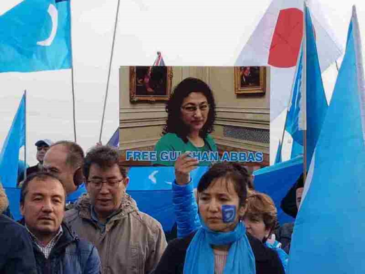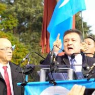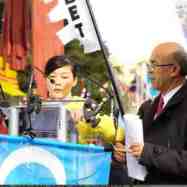 到了万国宫,广场上人头攒动,许多人不顾严寒、风雨,挥舞着手中的旗子和标语牌,代表自己的组织轮流发表演讲。横幅和标语随风飘扬,维吾尔族的国歌和西藏国歌播放完毕后,世界维吾尔代表大会执行主席奥梅尔・卡纳特先生(Omer Kanat)率先发言。