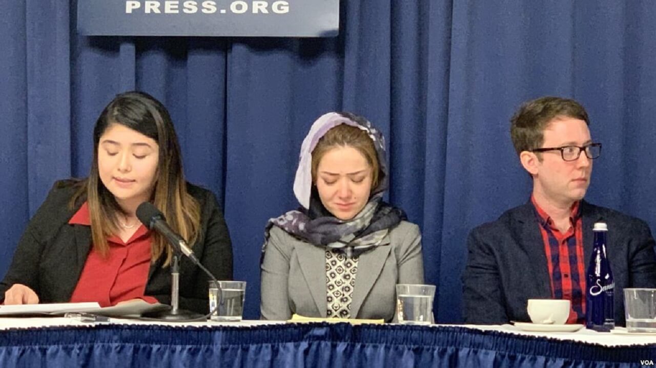 星期一(11月26日),在美国国家记者俱乐部一场关注新疆人权状况的新闻发布会上,米娜回忆起过去三年自己在中国三次被捕,家破人亡的惨痛经历,难以抑制悲伤的情绪,几度掩面哭泣。现场的听众也眼含泪光,会场上不时有轻微的抽泣声。