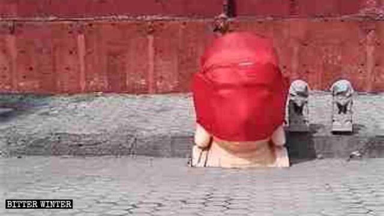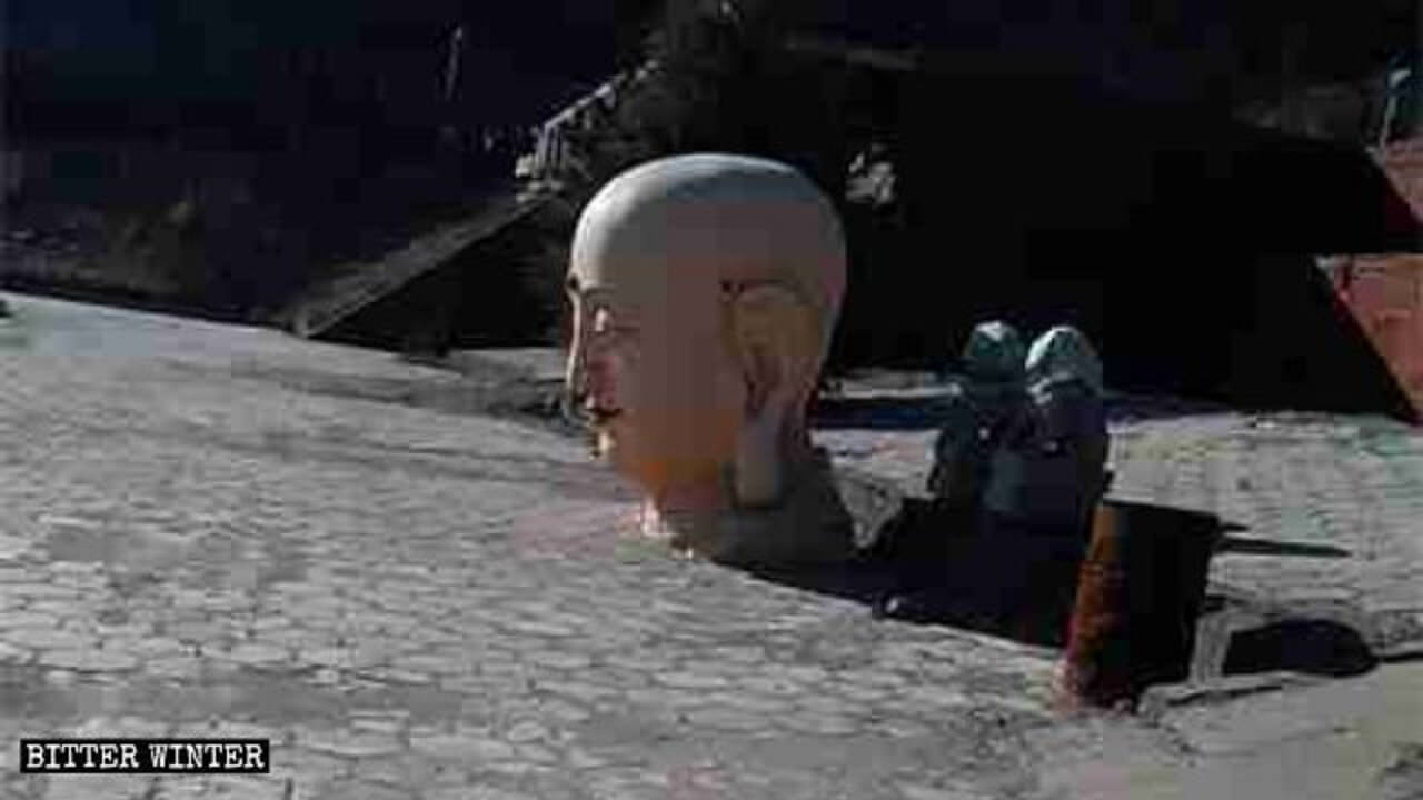 然而自2017年开始,当地宗教局要求该寺缩小寺院规模,并勒令拆毁寺庙建筑。2018年,宗教局以扩建的寺庙 “质量不合格” 为由,先后将该寺三处扩建的建筑群全部拆毁,只保留扩建前的小庙宇,并将大部分僧人驱逐出寺。寺院内一尊高18米的佛像也被拆除,其他原本放在室内的佛像也因强拆无处安置,被遗弃在该寺被拆毁的扩建建筑的房檐下。