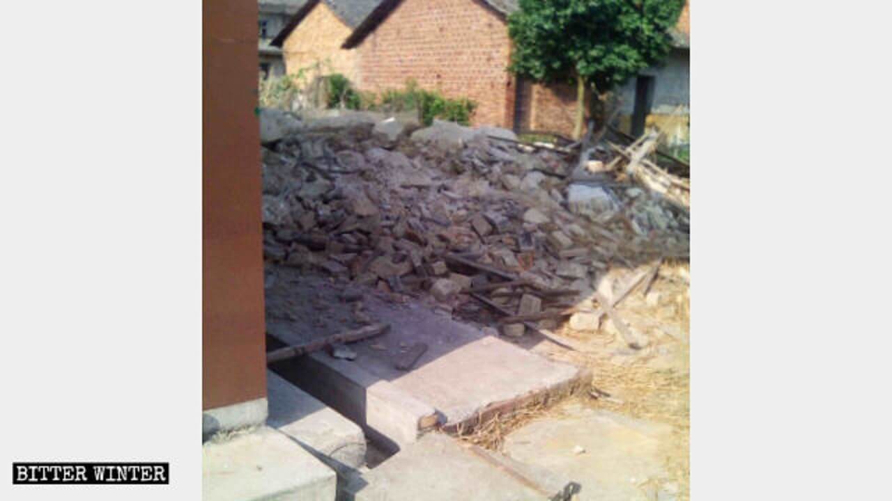 2018年7月16日,水西镇珍田村的塘下家庭教会一处聚会点同样被拆毁,近300人失去聚会场所。政府人员称拆除原因是信徒信的是 “洋人的神”。