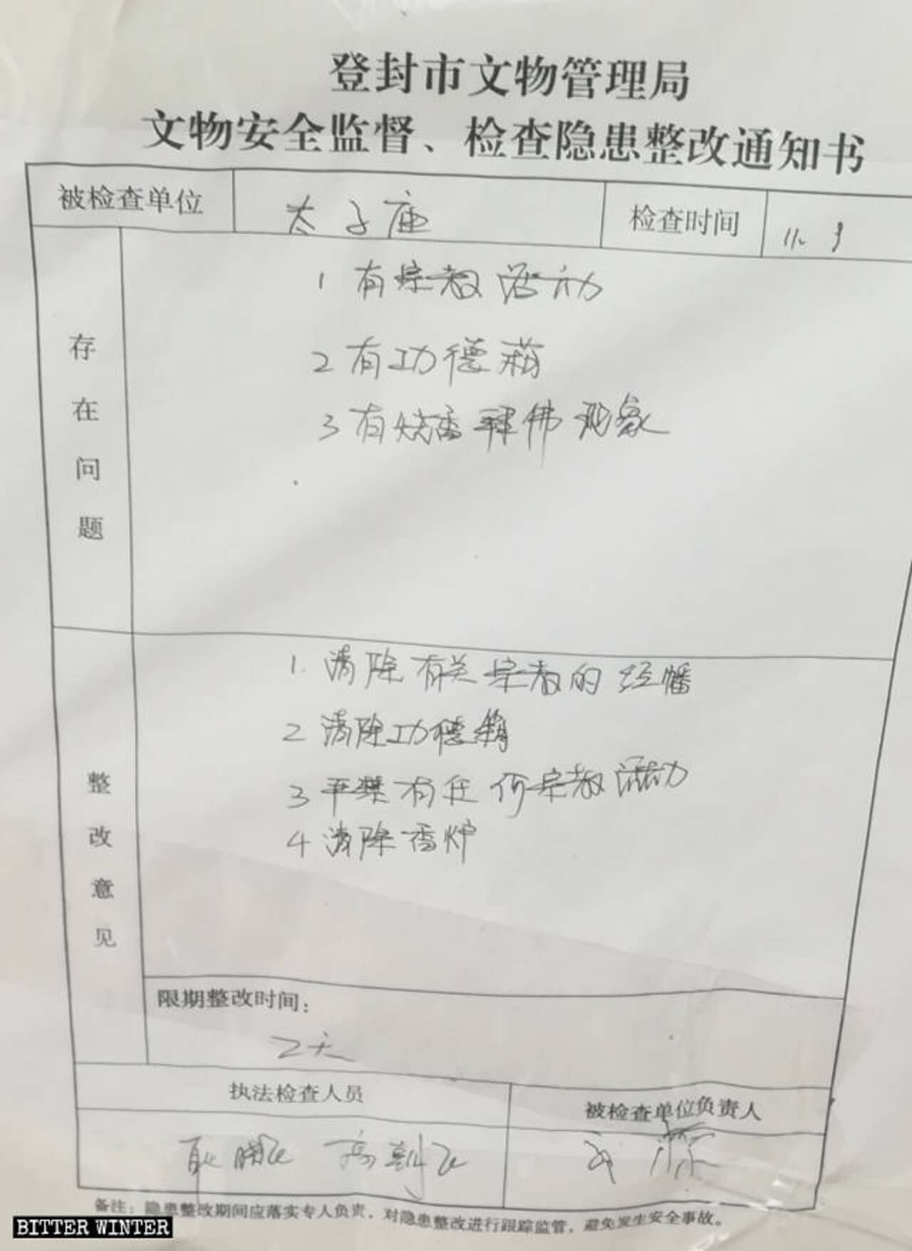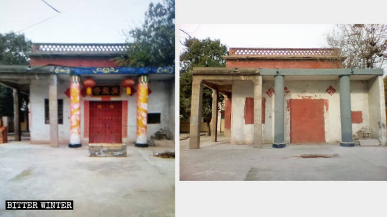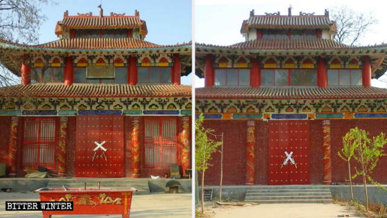 2018年11月29日,在上级政府官员命令下,三名村干部把香炉推倒,门匾戳掉,就连寺庙柱子上刻的图案也刮掉,后用砖将庙门、窗户全部堵死。