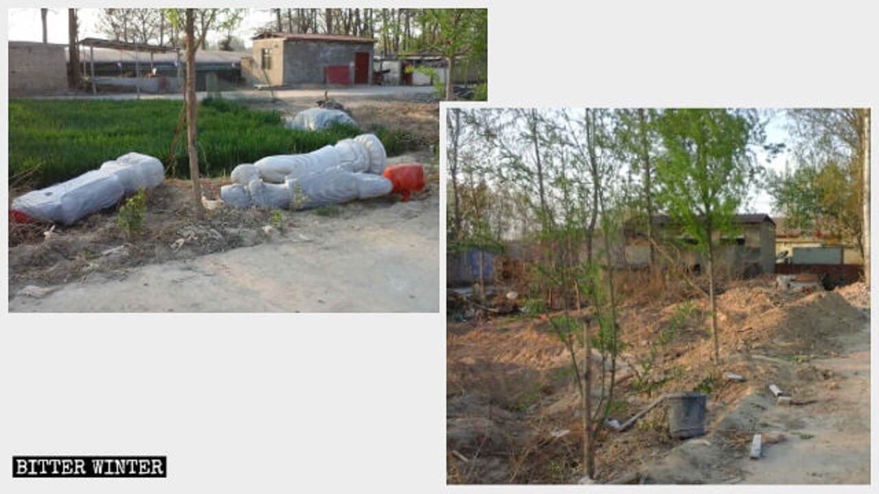 今年3月28日,濮阳市南乐县近德固乡的佛经寺被当局以未经审批为由查封。政府官员为避免信徒反抗,偷偷挖坑把佛像掩埋。