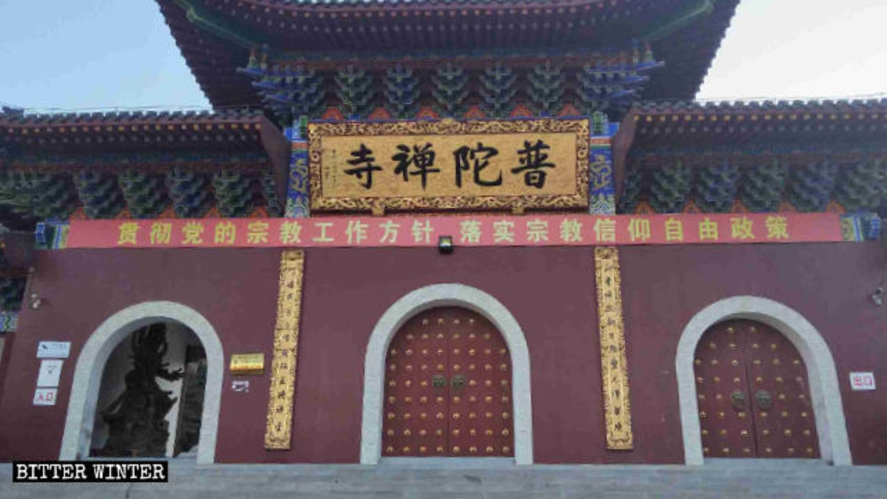 河北迁西普陀禅寺位于迁西县新集镇凤凰山,相传此地是观音菩萨显灵之圣地。普陀禅寺内原本供奉了一尊25米高的露天四面观音石像,但在2018年11月遭当局强拆。