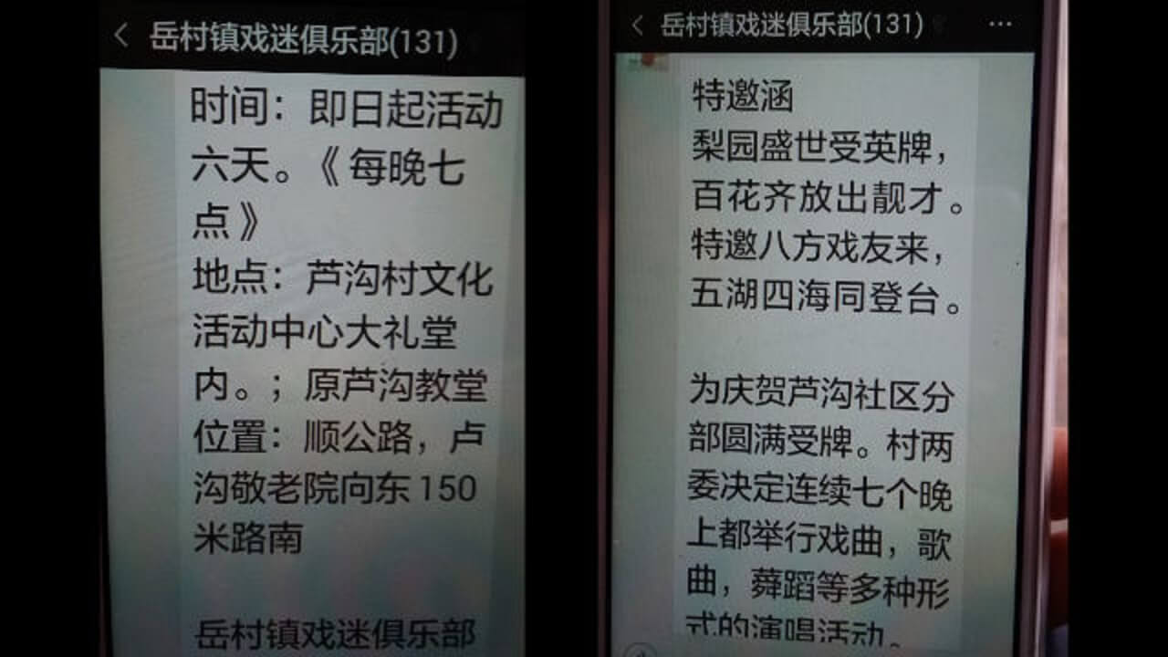 视频:村干部等人在教堂里唱红歌,戏迷协会成员在唱戏