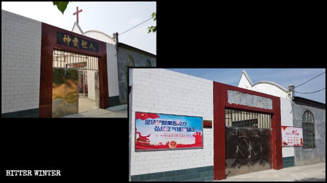 今年1月,河南省宗教巡视组发现教堂内仍有信徒偷着聚会,立即命令县宗教局将该教堂关闭、封死。当天下午,村委就带人将教堂后门焊死,前门又加了把锁,并且还停掉教堂的水电。