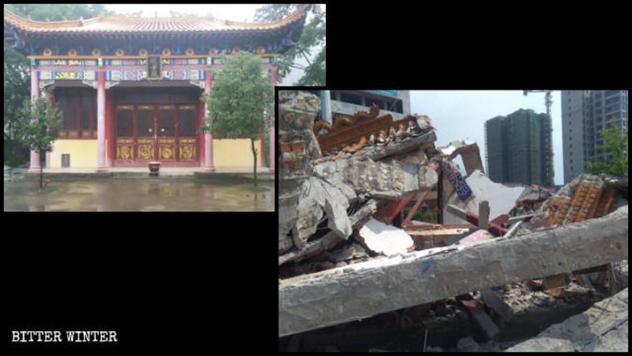 去年11月中旬,市民宗局人员强行将庙主转移到另一个寺庙,3个月后寺庙被强拆。