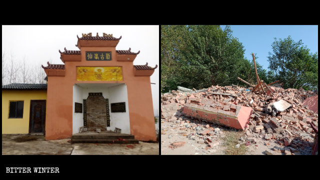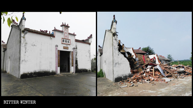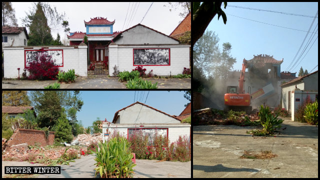 同期,该镇一座道教寺庙天齐宫也被强拆。据当地一信徒称,信徒为保庙,于1月将庙封门,然而最终还是难逃被拆。