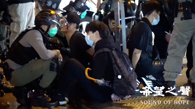 晚上9时后,警察分别在大南街、塘尾道和荔枝角道多处驱散,并拘捕至少十多名男女,他们双手被反绑坐在路边,有人眼角受伤流血,由警员押上警车。警方并继续在太子道西及砵兰街一带截停多名市民搜查。到近10时再在大南街制服一名黑衣男子,他的鼻子受伤,有救护车到场将他送院。