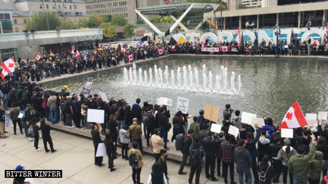 同日,加拿大多伦多市上千人也举行了大规模的撑香港反极权暴政的游行集会。