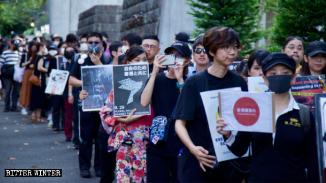 居日港人在东京同样于9月29日于千鸟渊十字路口公园发起了“全球连线共抗极权”的抗议活动,当天约700人身着黑衣参与游行支持香港。